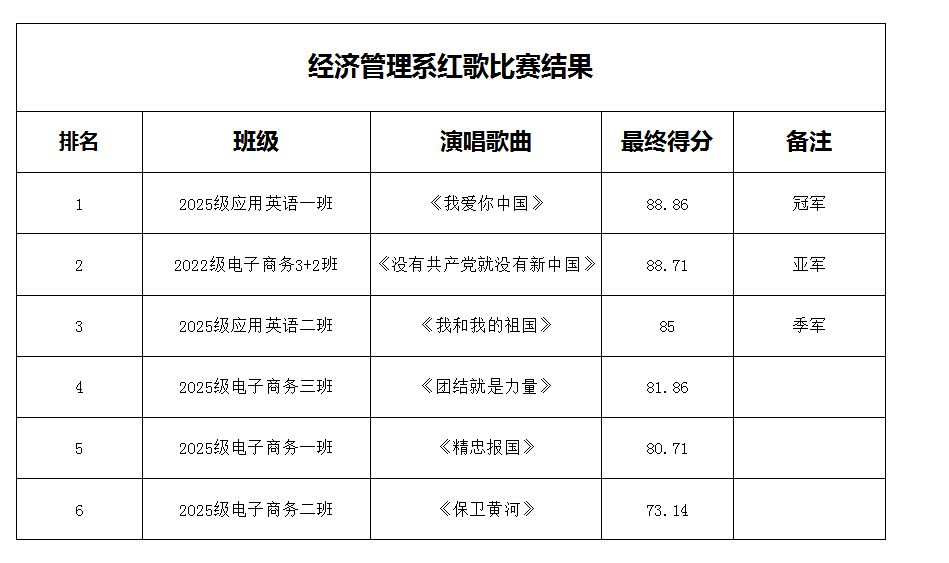 此次红歌比赛既是一场精彩的音乐盛宴,更是一堂沉浸式思政实践课。活动丰富了新生校园文化生活,增强了班级凝聚力与集体荣誉感,让红色基因在青春中传承。同学们纷纷表示,将把爱国热情转化为学习动力,以昂扬姿态不负韶华、不负时代,为民族复兴贡献青春力量。
