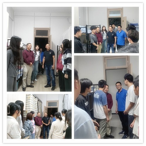 为进一步落实立德树人根本任务,全面了解我校2023级新生入学后适应情况,帮助全体新生更好更快地融入新集体与新环境,迎新当晚,福屿校区管委会林功凤主任、烹饪系薛伟强主任、经济管理系刘亚军主任、福屿校区党支部书记罗钰堂、辅导员及新生班主任走进新生宿舍,对新生学子进行走访慰问,与同学们“拉家常、聊近况、话学业”,送上来自福屿校区的第一份温暖和关怀。
