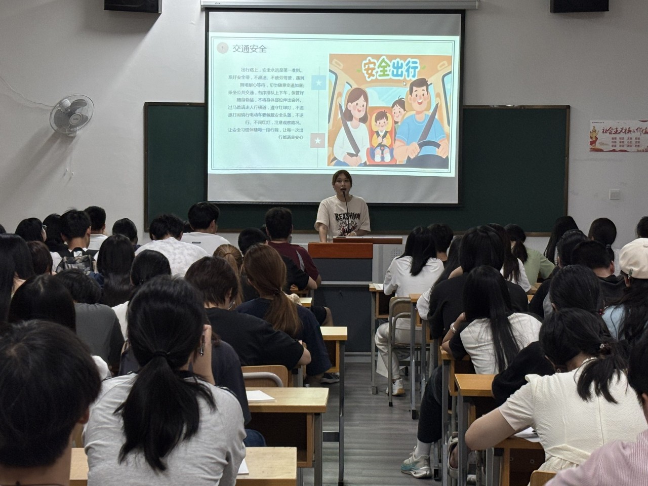 班会中,辅导员结合国庆假期出行特点,通过 PPT 演示、案例讲解、视频播放等多种形式,围绕交通出行、景区游览、消防安全、防骗防盗等核心内容展开细致讲解。在交通出行板块,辅导员重点强调了 “过马路走斑马线”“不乘坐无资质黑车”“骑行佩戴安全头盔” 等基础准则,结合近期典型交通事故案例,让学生直观感受违规出行的危害;针对假期热门景区游览,特别提醒学生要遵守景区秩序、不脱离家长或团队、做好个人健康防护,遇到突发情况及时联系工作人员或报警。