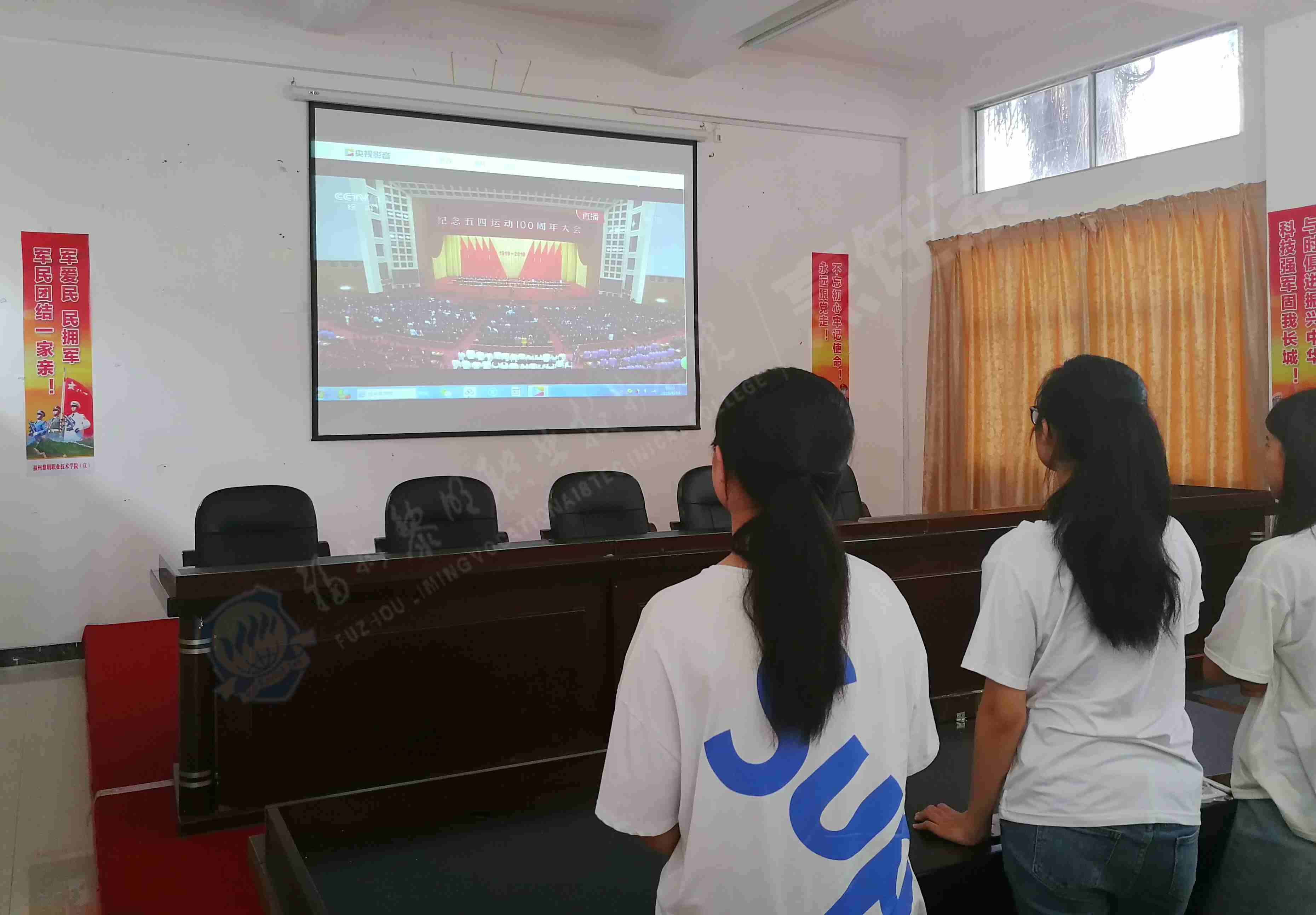 纪念五四运动100周年大会4月30日上午10时30分在人民大会堂举行。中共中央总书记、国家主席、中央军委主席习近平将出席大会并发表重要讲话。为此,烹饪系组织全体2018级学生在综合楼活动室观看大会直播,认真学习习近平总书记的重要讲话精神。