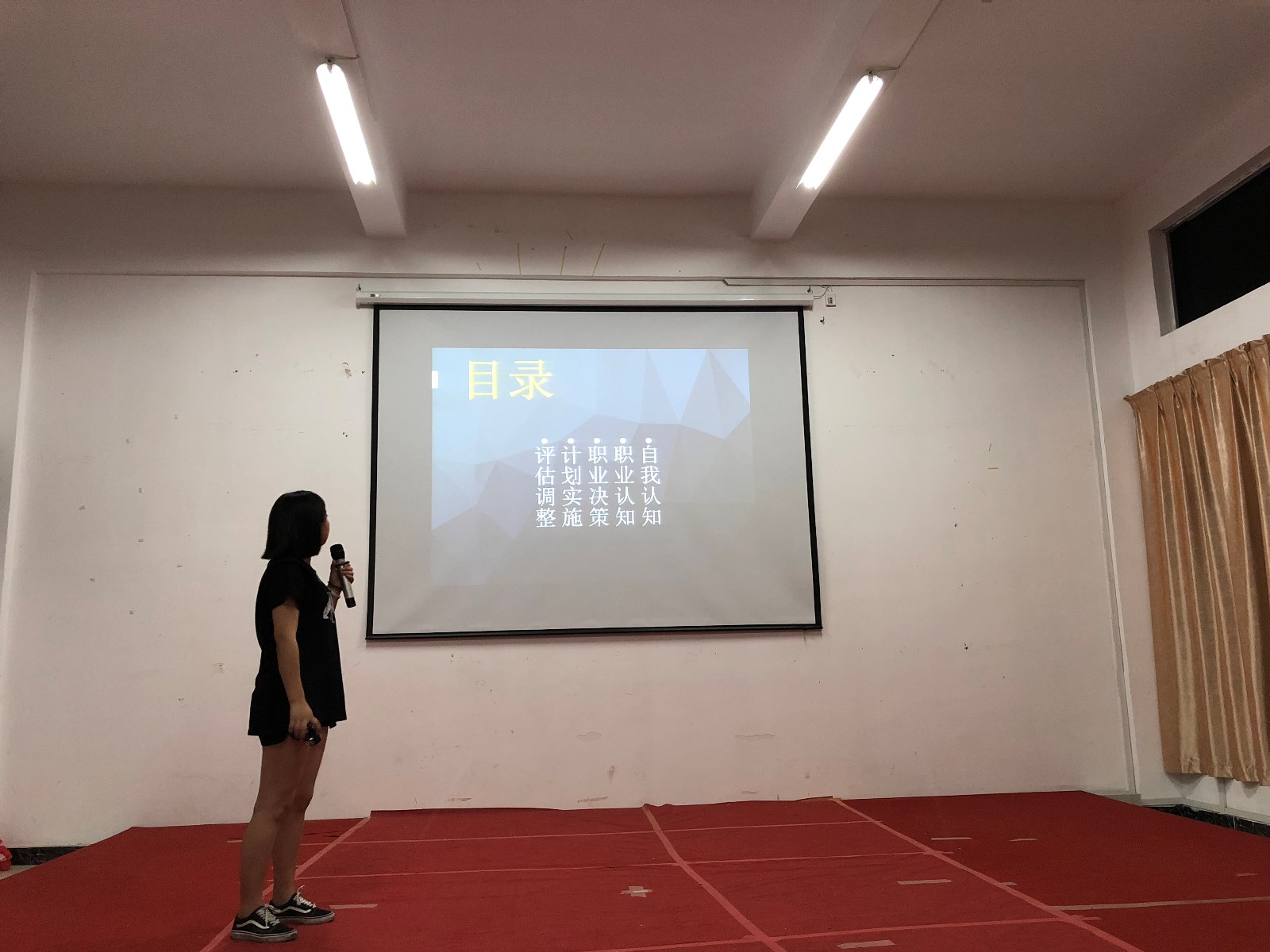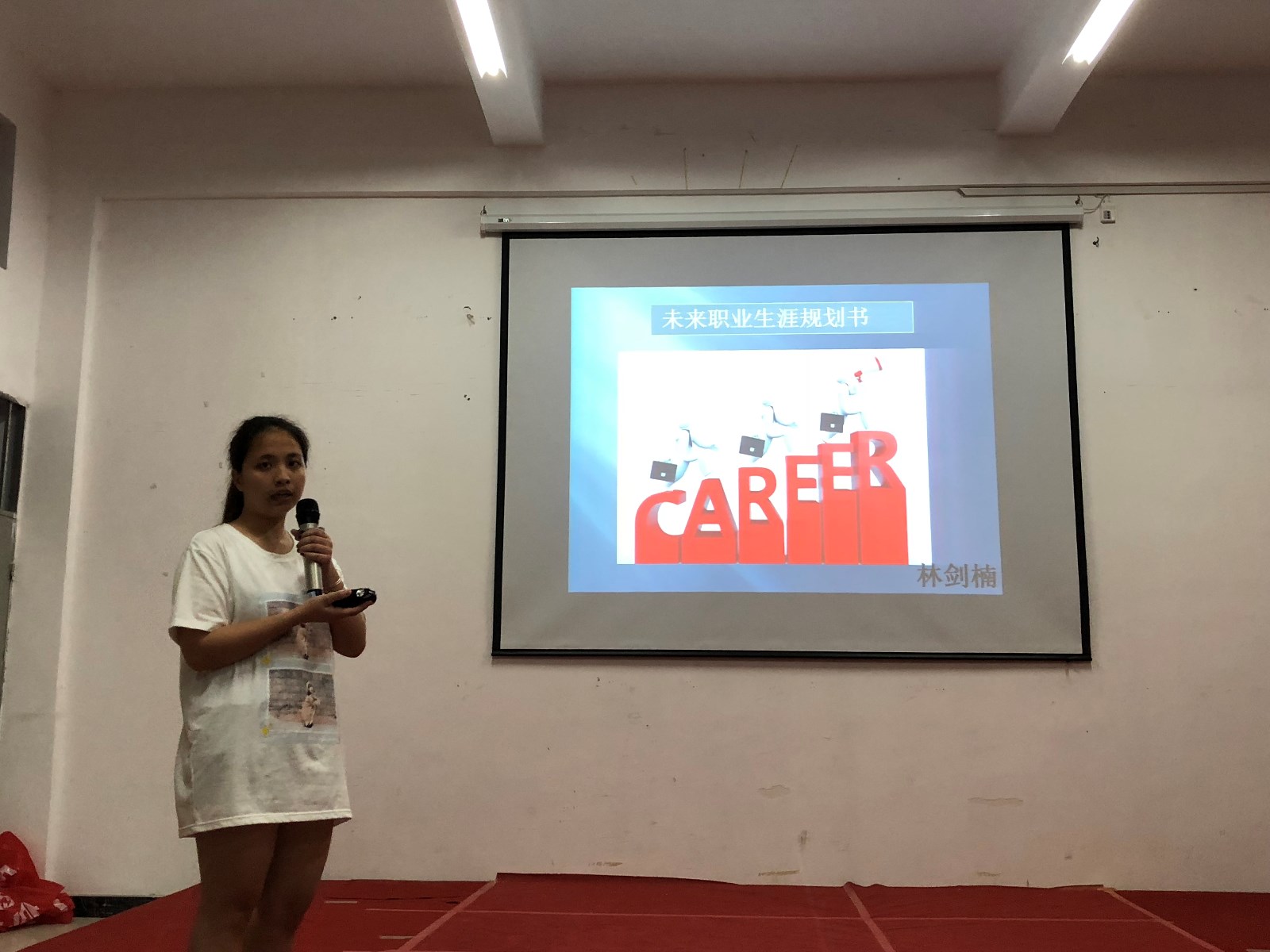 共有九名同学参加了比赛。现场展示以选手讲解个人的职业生涯规划PPT为主,在比赛中,有的选手希望在大学期间锻炼自己、不断提高能力,在大学毕业后进入心仪的企业;也有的选手表示期望在大学期间考取中式烹调高级技师证等等。从各参赛选手的PPT中,可以看出选手们都经过了认真地准备,通过职业测评认真分析了自身的优缺点等,向评委和观众们展示了比较全面的自我剖析和职业规划。