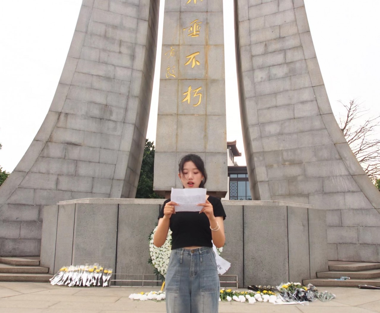 全体师生向烈士纪念碑肃立默哀