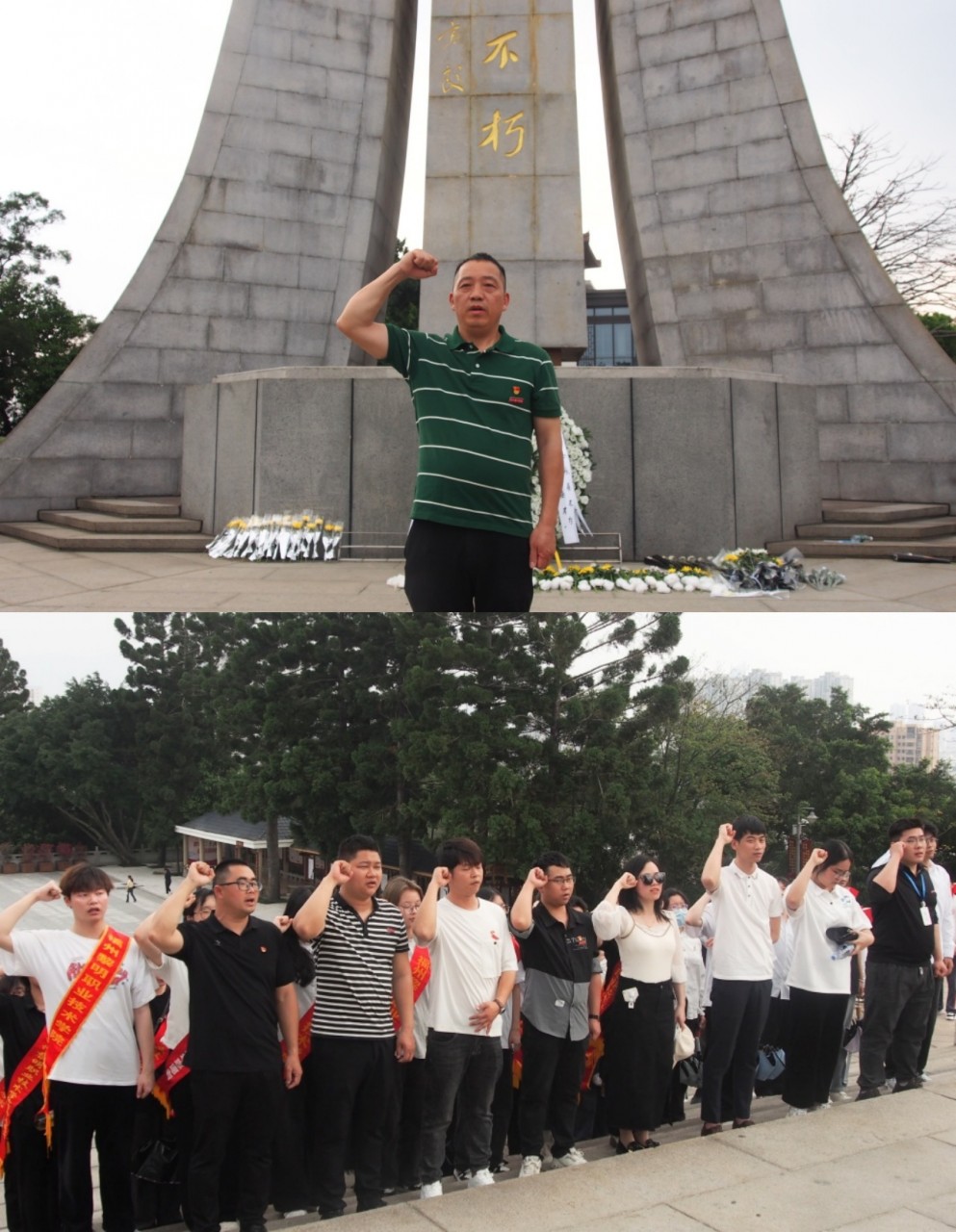 但见丰碑呈肃穆,更留浩气在人间。文林山的烈士陵园内,苍松翠柏环绕,烈士墓碑肃然矗立。参与者们整齐列队,向烈士纪念碑敬献花,并肃立默哀,表达对烈士的崇高敬意和深切缅怀之情。