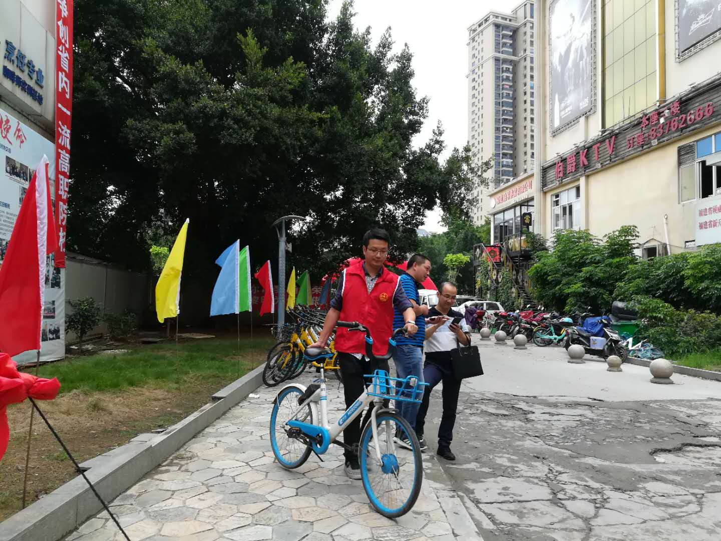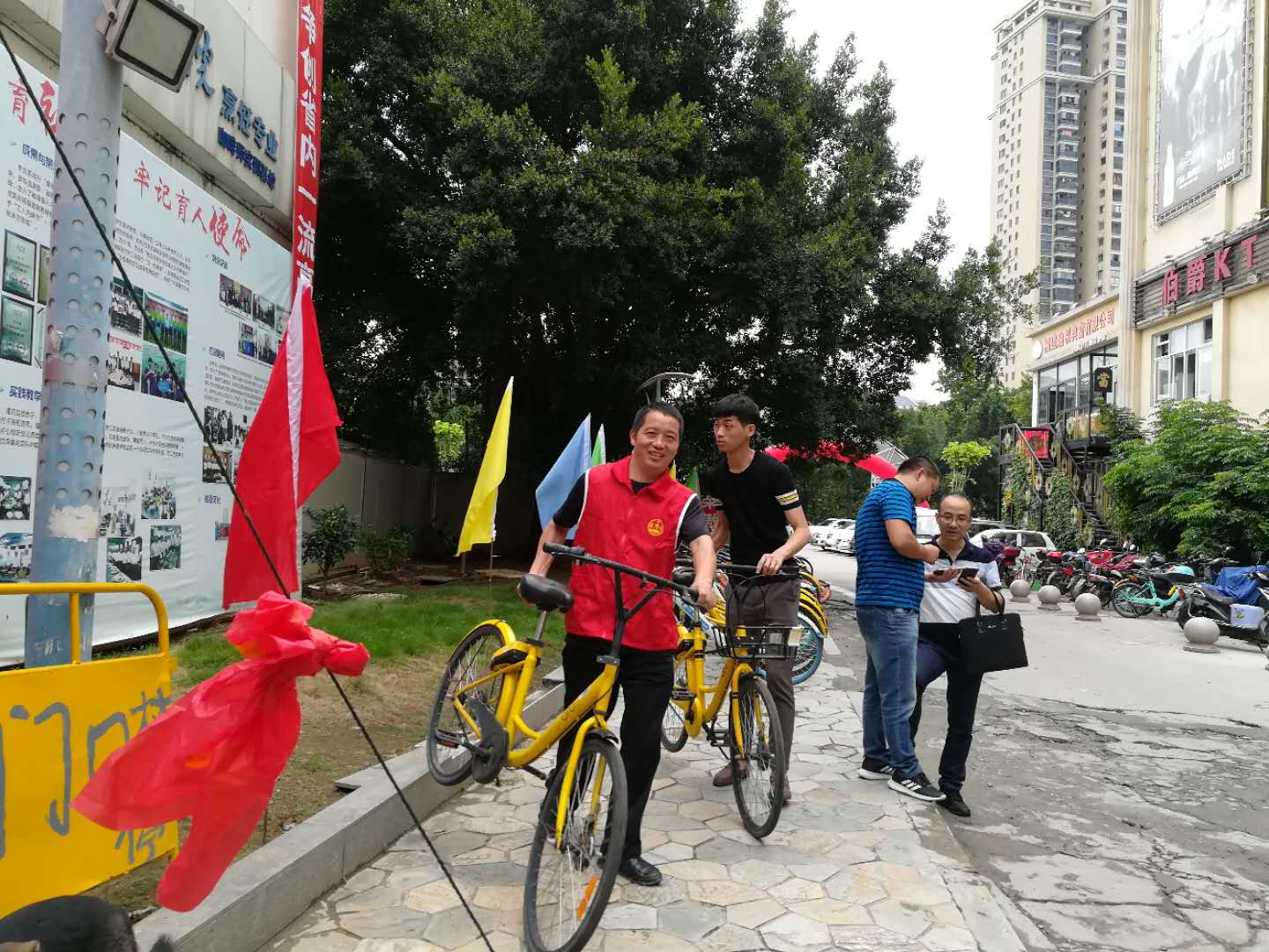 金秋九月,在2018级新生即将来校报到之前,全系上下动员一起做好各项迎新准备,9月9日下午,系党支部书记陈铭帅带领教工党员参与到迎新准备工作中,他们穿上红马甲,和同学们一起清理校园周边的共享单车,把乱停放的共享单车移到道路周边,不影响车辆的正常通行。在不到1个小时的时间里,几十辆共享单车都被清理到周边。为迎接新生报到,创造良好的校园环境做准备。