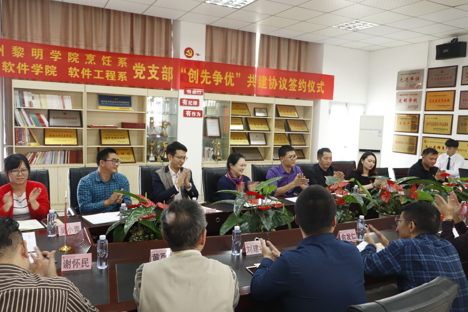 为深入学习贯彻习近平新时代中国特色社会主义思想和党的十九大精神,进一步提升基层党组织的创新能力。12月6日下午,烹饪系党支部与福州软件学院软件工程系党总支开展结对共建活动,并签订共建协议。学院王苏华董事长、学院党委刘鹏副书记以及福州软件学院领导俞发仁、王秋宏、刘建华等出席共建会。