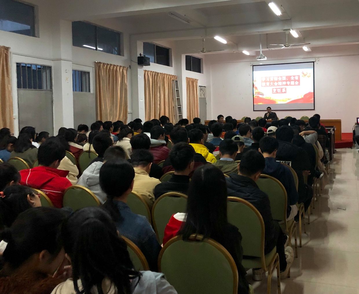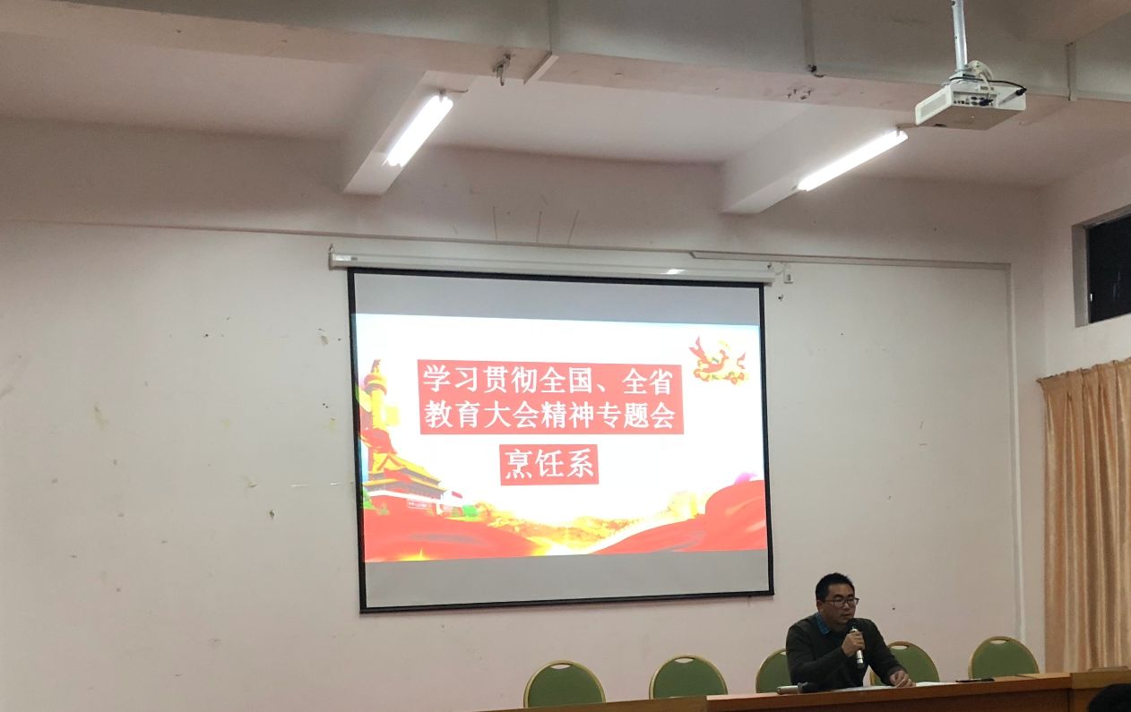 2019年3月14日晚上,在烹饪系活动室召开全体学生学习全国、全省教育大会精神的专题会,会议由烹饪系党支部书记罗钰堂主持。