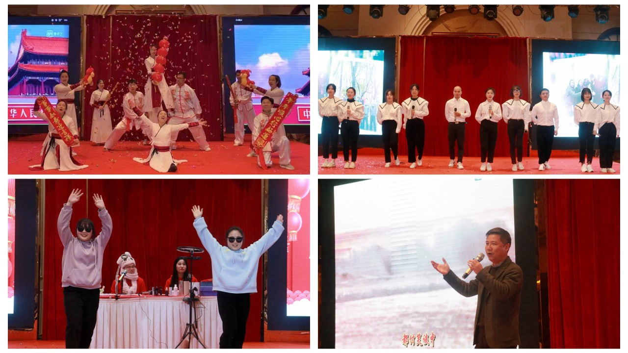 本次联欢会以节目表演为主,建筑工程系工会带来的舞蹈《福气要来到》拉开序幕,俏皮可爱的服装造型,搭配活泼的舞蹈动作,营造了一种轻松欢乐的氛围;新闻脱口秀《新闻晚知道》,同样带给大家欢乐,背景短片制作精良,台词风趣幽默,颇具喜剧色彩,足见他们的严谨和用心;舞蹈《天天向上》展现了烹饪系师生的奋斗历程和璀璨成果,彰显了他们自强不息、精益求精的工匠精神,洋溢着青春的活力和生机;音诗画《万疆》,舞出了他们携手并进、团结向上的精神风貌,以及对未来的美好期盼;钢琴伴唱《梨花颂》,用钢琴伴奏搭配独唱,精彩演绎了京剧经典曲目《梨花颂》,为观众献上了一曲视听盛宴,赢得了阵阵掌声;舞蹈《中国字中国舞》,将书法与古典舞相结合,柔美不乏经典,彰显了传统文化的魅力;创意直播秀《能播善舞》,由商务系专任教师自编自导自演,突出专业特色的同时,带给了观众热闹而欢乐的喜感;小组唱《最初的梦想》,一群追逐梦想的年轻教师,用自制短片搭配歌曲,表达了他们不忘教书育人初心,牢记立德树人使命的执着和决心;舞蹈《新年舞起来》,武术融合舞蹈动作,思政与美育体育结合,动感又活泼,充分展现了青年教师蓬勃向上的青春力量。最后,党委书记廖诗忠倾情献唱《滚滚长江东逝水》,浑厚的声音唱出了黎明人继往开来、砥砺前行的雄心壮志,将联欢会送上高潮的同时,为整场演出画上了圆满的句号。