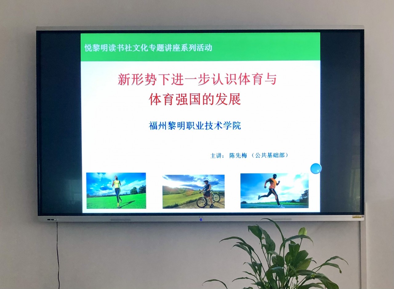 悦黎明读书社指导老师每学期为读者举办一场专题文化讲座,本次由体育教研室主任陈先梅副教授主讲体育文化。他以“什么是体育”开题并与学生现场互动,解答了体育就像一个万花筒,它恒提恒新;接着又围绕“学校体育的教育体系”,阐明体育的教育价值在于运动改变大脑,运动是EQ与IQ进步的大关键!以及“四位一体”的新时代体育目标为:享受乐趣、增强体质、健全人格、锤炼意志;最后层层递进至“体育强国”方面,以国家出台的一系列纲要为论据,展开解读体育在现代化强国建设中的重要性与必然性。整场讲座轻松富有哲理,列举诸多国内知名运动员的事例,以图文并茂形式,宣传体育不仅是一种身体运动,还是一种社会文化活动,他的讲座打开了现场听众对体育认识的格局,具有很强的学习意义。