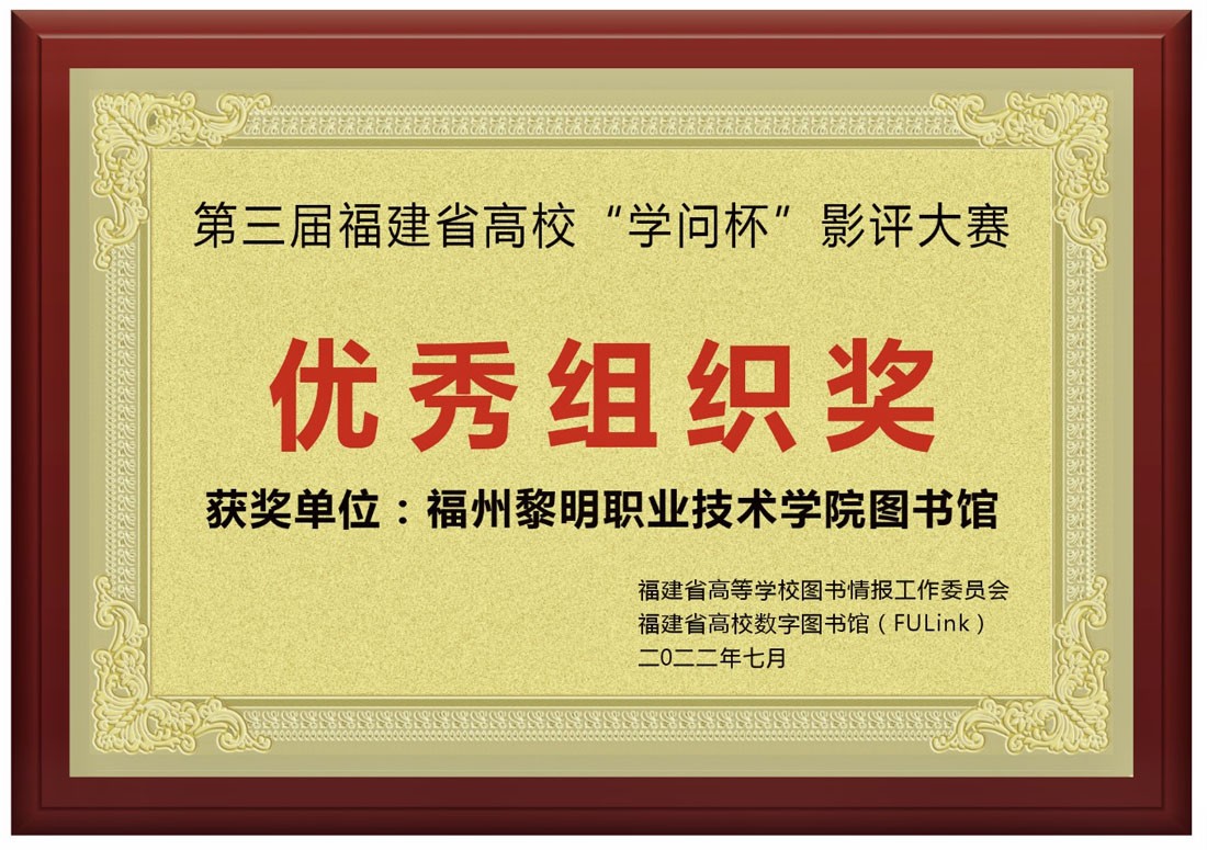 此次大赛中,我院师生积极参赛,各系学生踊跃报名。在图书馆与悦黎明读书社老师共同参评下,按比例推选出学生组6篇、教师组4篇影评作品提交省赛参评。经选拔、评比,我馆黄静雯、杨惠琳老师获得全省影评大赛教师组二等奖(暨教师组总第6、7名),曾丽贞、洪泽彬老师获得教师组优秀奖;郑其煌、郑燕芳、林佳怡、吴垂阳、黄凌雁、吴思思六位同学获得高职院校组学生组优秀奖;团体项目中我院图书馆荣获高职组优秀组织奖,馆员曾丽贞老师荣获优秀组织个人奖。
