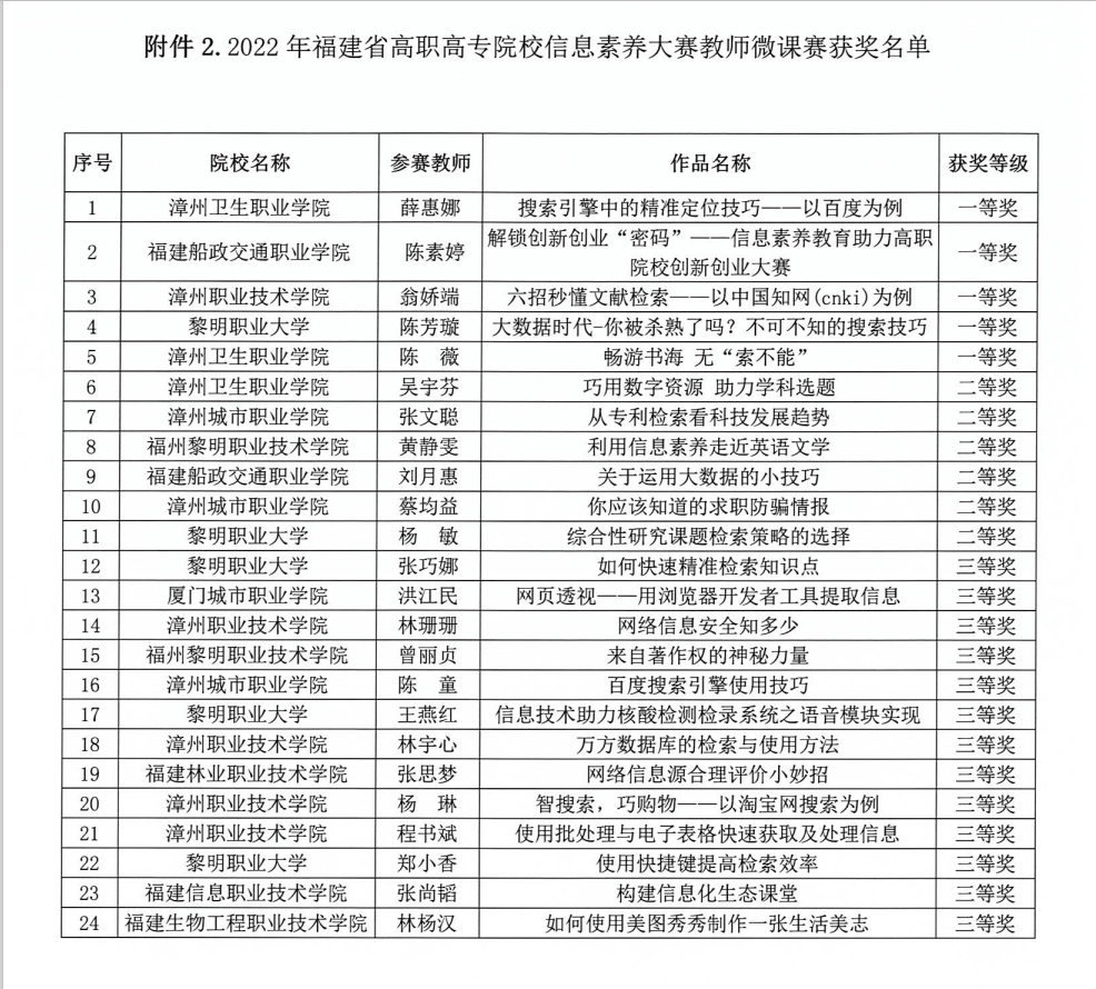 11月13日,由福建省高校图工委高等职业院校分委会主办的2022年“中文在线杯”福建省高职高专院校信息素养大赛开赛,全省共25所高职高专院校三万多名学生线上参赛。
