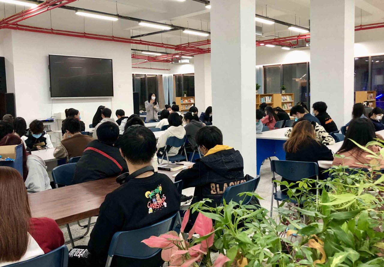 读书交流会由苏馆长做开场讲话,她表示这是新生读者入会以来开展的第一场读书交流会,见到这么多热爱阅读的会员相聚图书馆,她感到很欣喜也很欣慰。接着曾丽贞老师与黄静雯老师分别向会员们分享了英国小说家毛姆的书籍,一本是探讨婚姻与人性的《面纱》,一本是帮助培养阅读习惯的《阅读是一座随身携带的避难所》。老师们的分享,引发读协会员们也纷纷交流各自阅读的好书,有一直以来热门话题的《月亮与六便士》、有内容丰富发人深省的《曾国藩家书》、还有获雨果奖的科幻小说《三体》、百看不厌的四大名著《红楼梦》、经典的西方文学《简·爱》等等等等,交流会现场文学气氛浓郁热烈,老师们也不时给予点赞与评说。