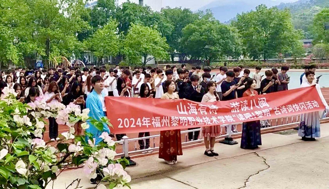 4.23世界读书日下午,图书馆联合艺术与建筑系在后山操场举办“山海有诗 游读八闽——2024年福州黎明职业技术学院校园古诗词快闪”活动,院长范超峰教授、工会主席王新华老师亲临现场领诵,艺建系近200名学生参加活动。