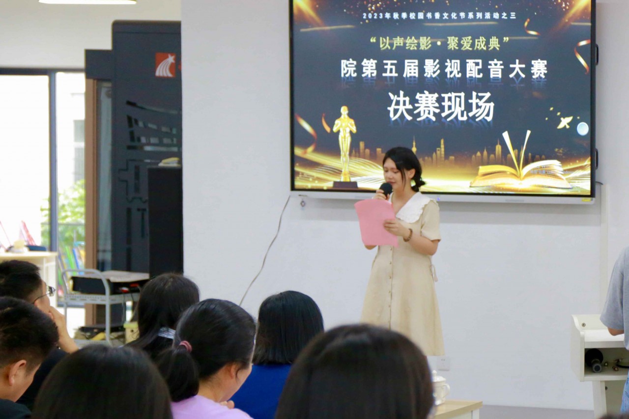 5月28日下午,由图书馆和院团委联合主办的《以声绘影•聚爱成典》暨院第五届经典影视配音大赛决赛在图书馆举行。范超峰院长、廖诗忠书记等院领导一行亲临现场,各系(部)、处(室)负责人、嘉宾评委、参赛选手及师生代表近130人参加。