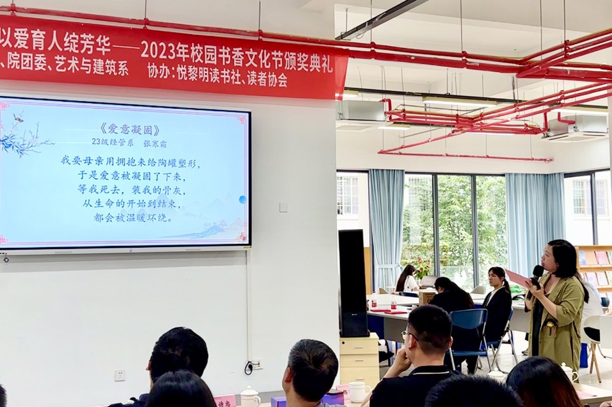 颁奖典礼上,院、处(室)领导分别为摄影、五行诗大赛的获奖师生颁奖。艺术与建筑系、烹饪系荣获书香文化节优秀组织奖。在作品赏析环节,艺术与建筑系谢祥灯老师以其深厚的艺术素养和丰富的专业知识,对获奖摄影作品的构图、光影运用、意境表现等方面进行细致分析;马克思主义学院陈林敏博士则对获奖五行诗进行品赏,她深入剖析诗作蕴含的深意、情感,以及不同的创作手法带给读者的品读价值;两位老师的赏析相得益彰,为活动增添了别样精彩,也让现场观众深深领略了不同文艺形式的魅力与风采。