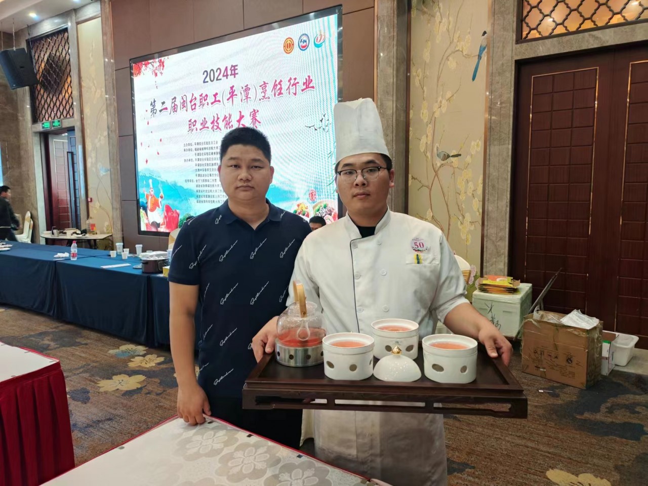 2024年4月25日-4月26日,2024年平潭综合实验区第二届闽台职工(平潭)职工烹饪行业职业技能大赛在平潭麒麟荣誉大酒店举办。薛伟强技能大师工作室成员李世龙参加本次大赛,并邀请省级技能大师工作室、福建省劳模卢云长对学徒李世龙的作品进行指导点评。