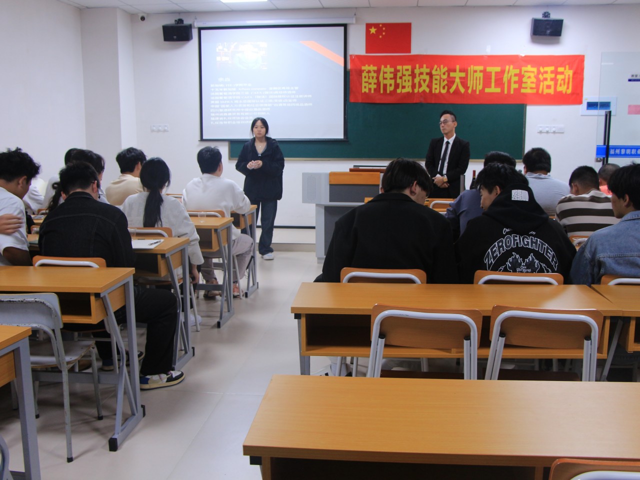 2024 年 11 月 21 日,一场别开生面的品酒课在福州黎明职业技术学院餐饮产业大楼举办。本次活动由薛伟强技能大师工作室主办,工作室成员一同参加。此次品酒课特别邀请到了资深酒文化专家余焱老师担任主讲嘉宾,为同学们带来了一场关于酒文化的知识盛宴。