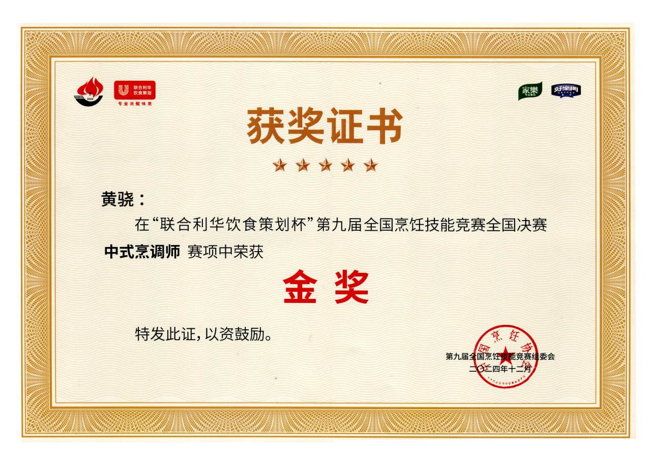 本次竞赛来自全国19个分赛区的近300名精英选手,在总决赛的赛场上共襄技能盛举,角逐巅峰荣耀。技能大师工作室成员黄骁沉着应战、稳定发挥,最终斩获中式烹调师赛项金奖。