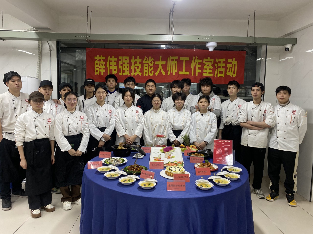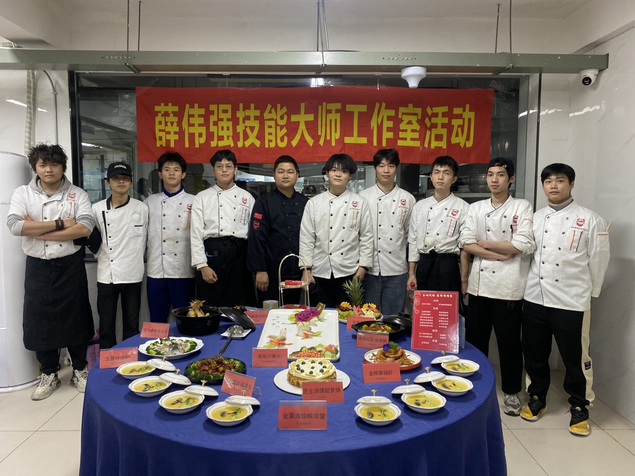 这场宴席以“金蛇欢腾,富贵团圆宴”为主题,不仅是一次美食的展示,更是技能大师工作室成员们技艺交流与成长的平台。在筹备过程中,成员们相互分享自己的烹饪心得和技巧,从食材的预处理到摆盘的艺术,每一个细节都成为了交流的话题。