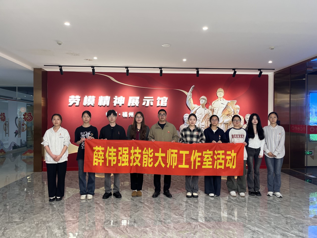 4 月 29 日,福州市薛伟强技能大师工作室协成员走进福州市文化宫劳模精神展示馆,开展 “弘扬劳模精神 践行八项规定” 主题活动,探寻技能匠心,汲取奋进力量。