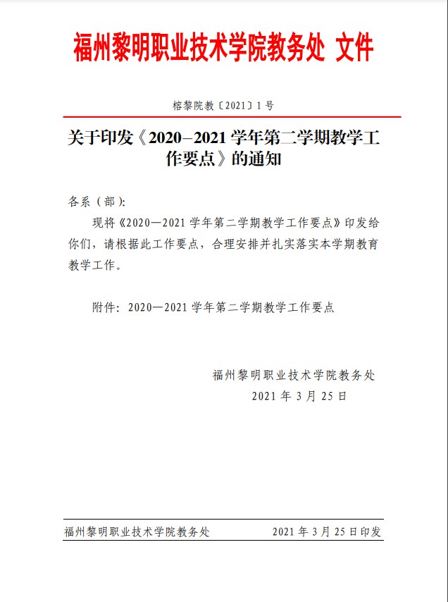 关于印发《2020—2021学年第二学期教学工作要点》的通知