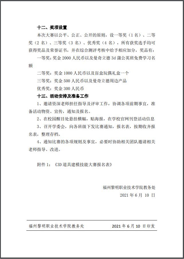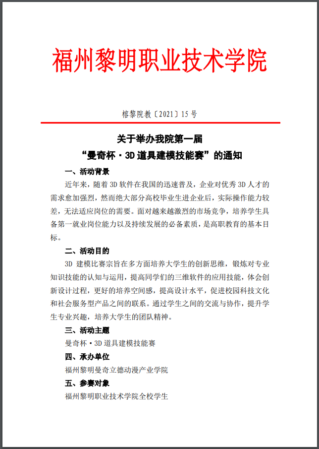 关于举办我院第一届 “曼奇杯•3D道具建模技能赛”的通知
