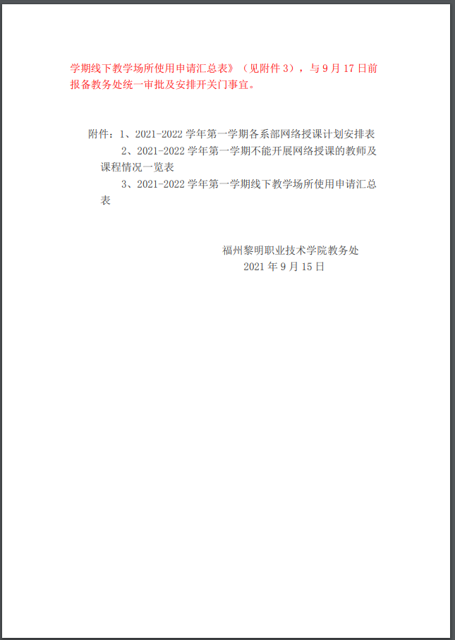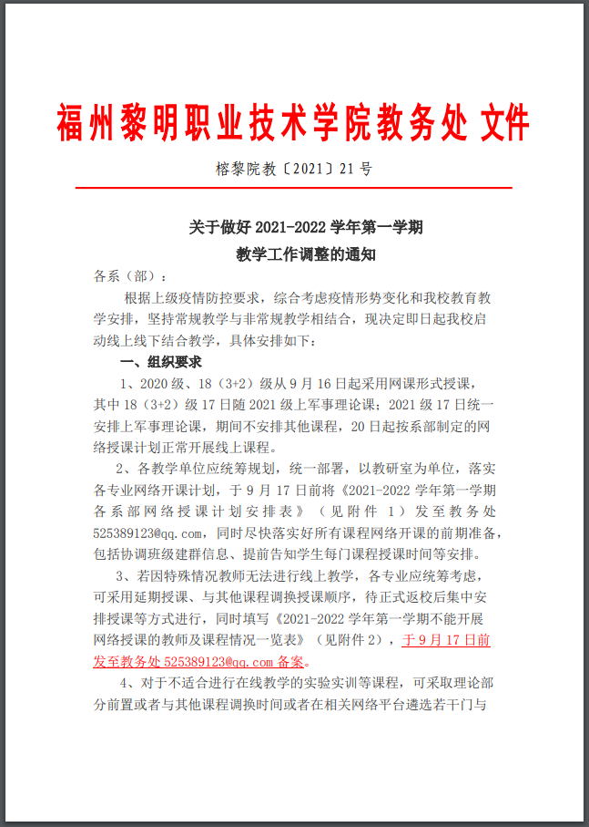 关于做好2021-2022学年第一学期 教学工作调整的通知