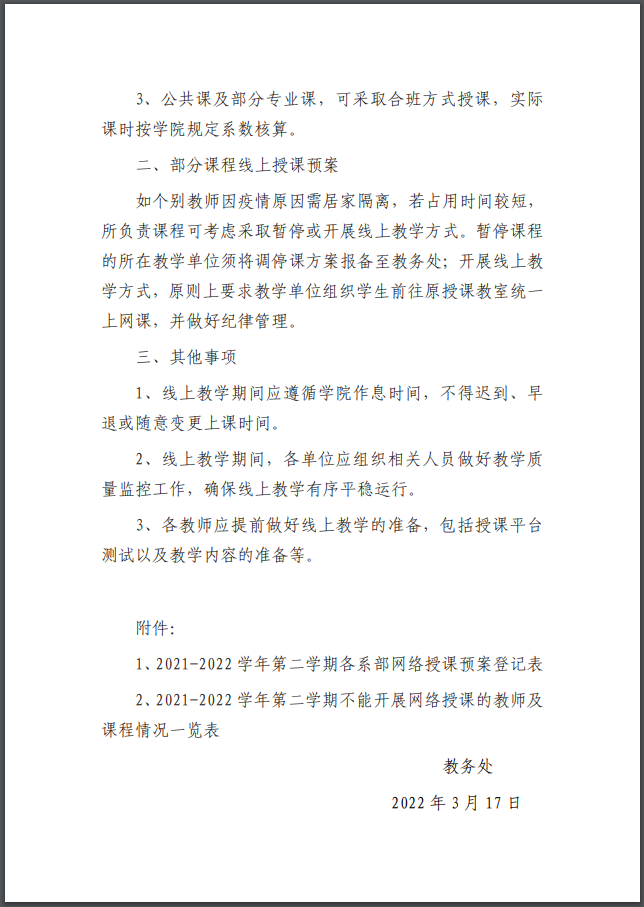 关于做好疫情防控期间线上教学预案的通知