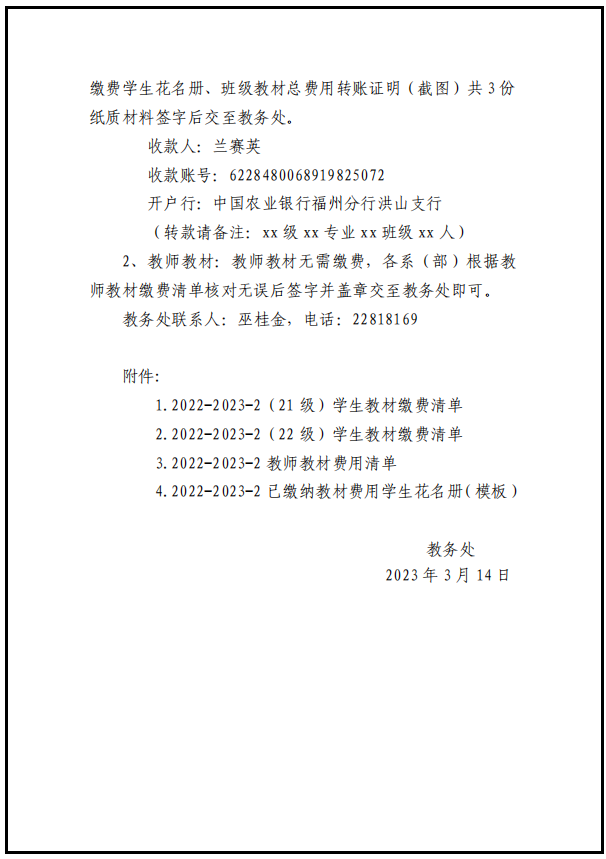 关于做好2022-2023学年第2学期教材缴费工作的通知