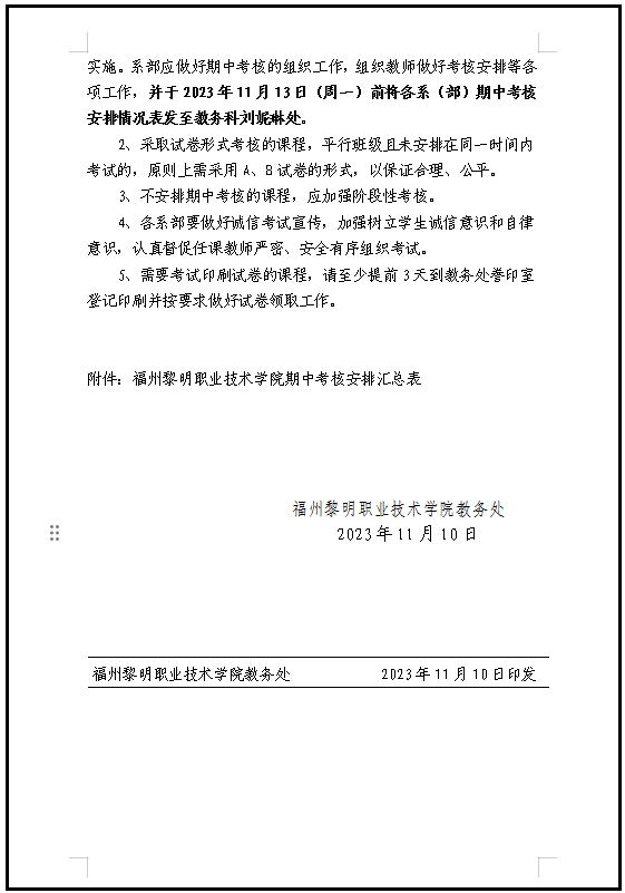 关于开展2023—2024学年第一学期 期中(阶段性)考核的通知