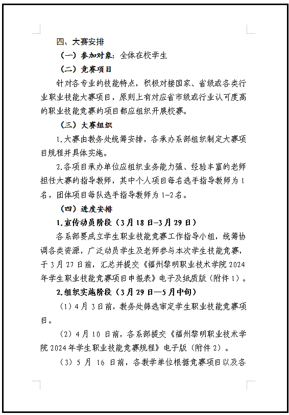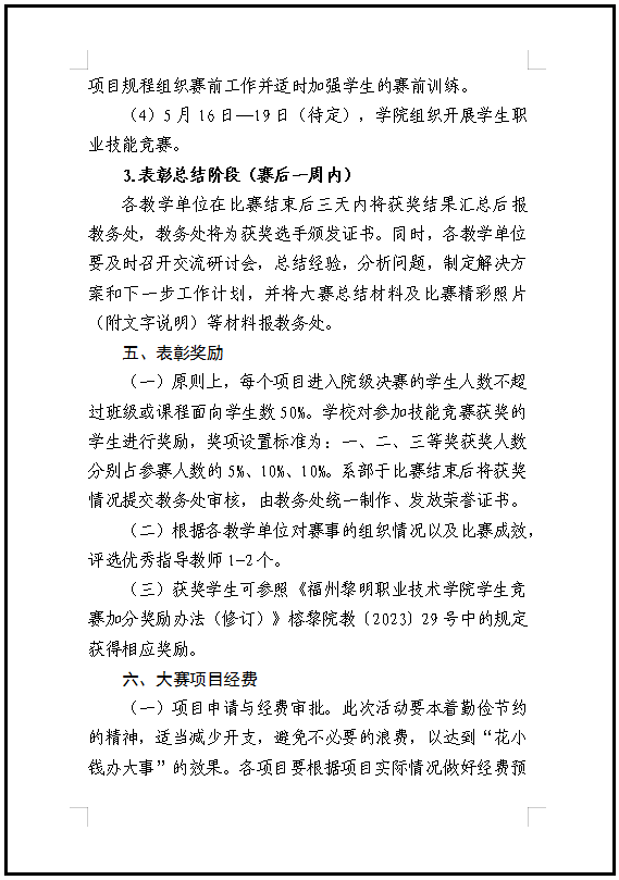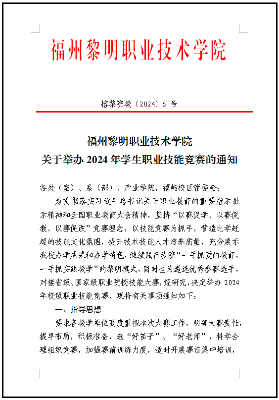 福州黎明职业技术学院关于举办2024年学生职业技能竞赛的通知