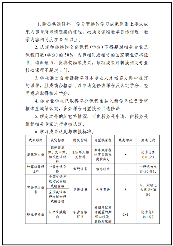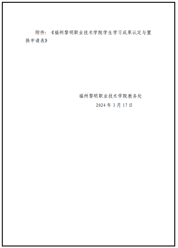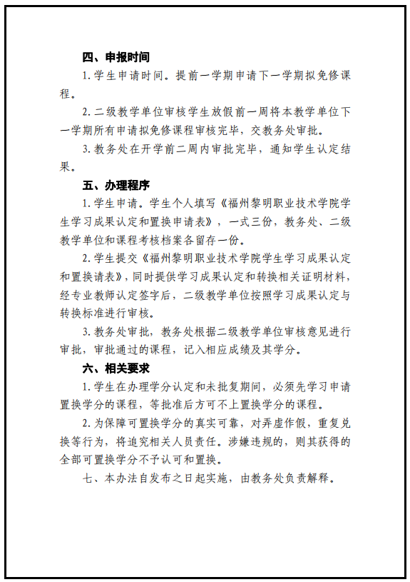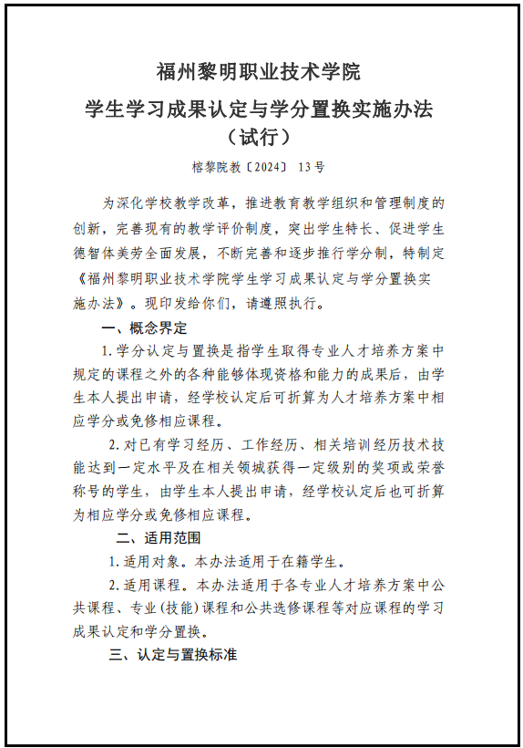 福州黎明职业技术学院学生学习成果认定与学分置换实施办法 (试行)