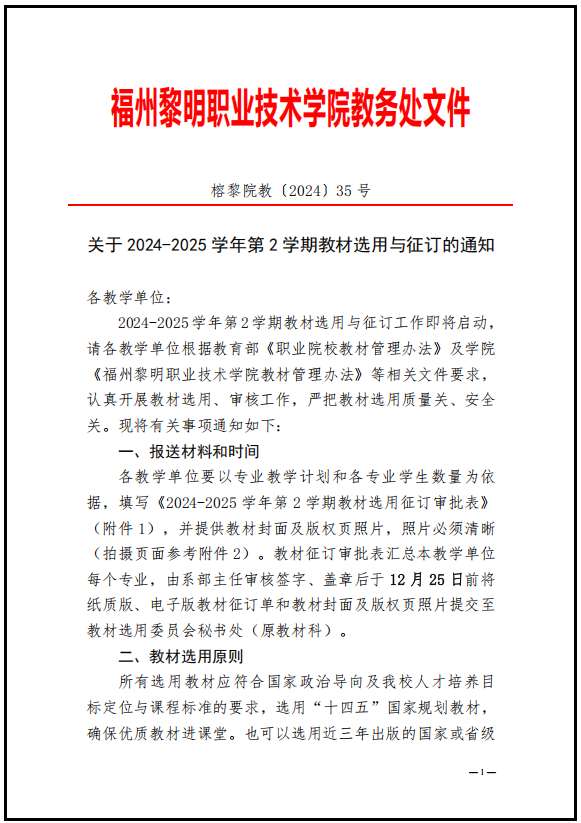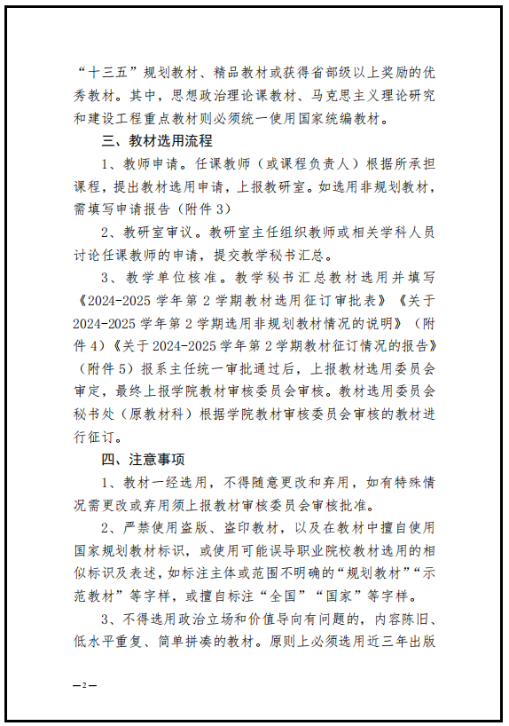 关于 2024-2025 学年第 2 学期教材选用与征订的通知