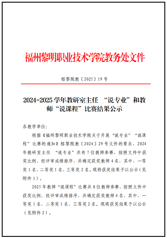2024-2025 学年教研室主任 “说专业”和教 师“说课程”比赛结果公示