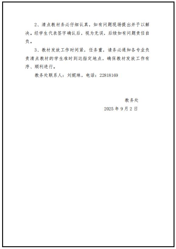 关于做好 2025-2026 学年第 1 学期教材发放工作的通知