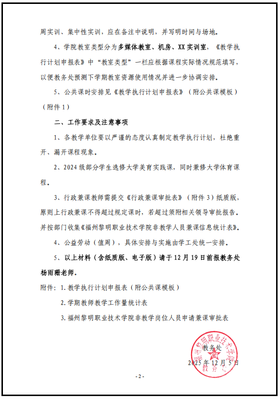 关于制定2025-2026学年第二学期教学执行计划的通知