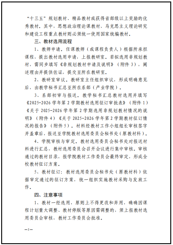 关于 2025-2026学年第 2 学期教材选用与征订的通知