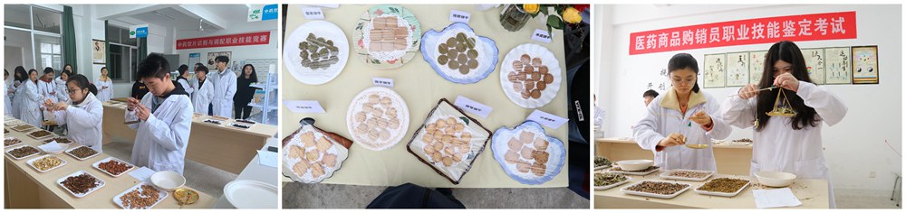 药学系结合专业特点,设置了“中药饮片识别与调配”、“医学检测服务与健康指导”、“中药香囊展销”、“药膳养生饼干制作展示”等赛项,其中 “药膳饼干”深受广大师生的喜爱,包括紫苏饼干、陈皮饼干、茯苓饼干、莲子饼干等多种药膳饼干,具有平肝健脾明目等功效;开展量血压、测血糖以及测血型等常规检测项目,既服务师生,又有利学生将所学到的知识投入到日常实践应用中。