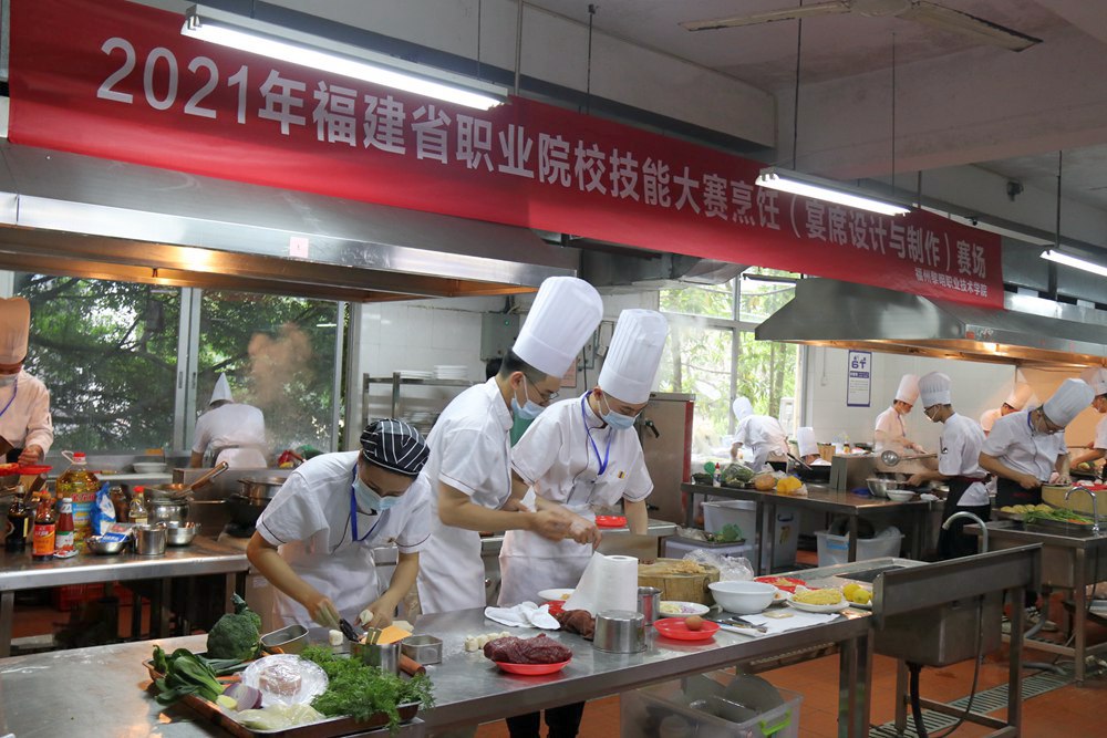 飘香四月迎盛会,精英云集添华彩。4月27日,2021年福建省职业院校技能大赛烹饪赛项(高职组)在福州黎明职业技术学院(福屿校区)顺利举行。本次大赛由福建省教育厅、福建省人力资源和社会保障厅、福建省财政厅、福建省农业农村厅、福建省卫生健康委员会、福建省总工会、共青团福建省委、福建省中华职业教育社主办,福州黎明职业技术学院承办。