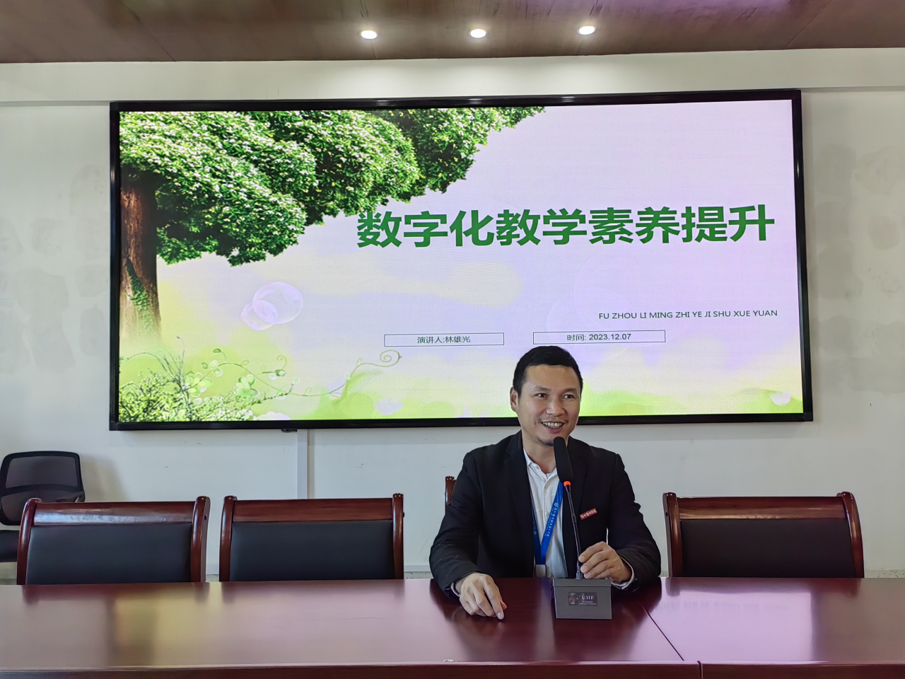 为学习贯彻党的二十大精神,落实教育部教育数字化战略行动部署,进一步提升我院信息化水平,提升教师数字化融合教学能力,12月7日我院在综合楼627教室举办数字化教学素养提升与教学应用专题讲座,本次讲座由现代教育技术中心主任林雄光老师主讲,全体专任教师、教学相关人员参会。