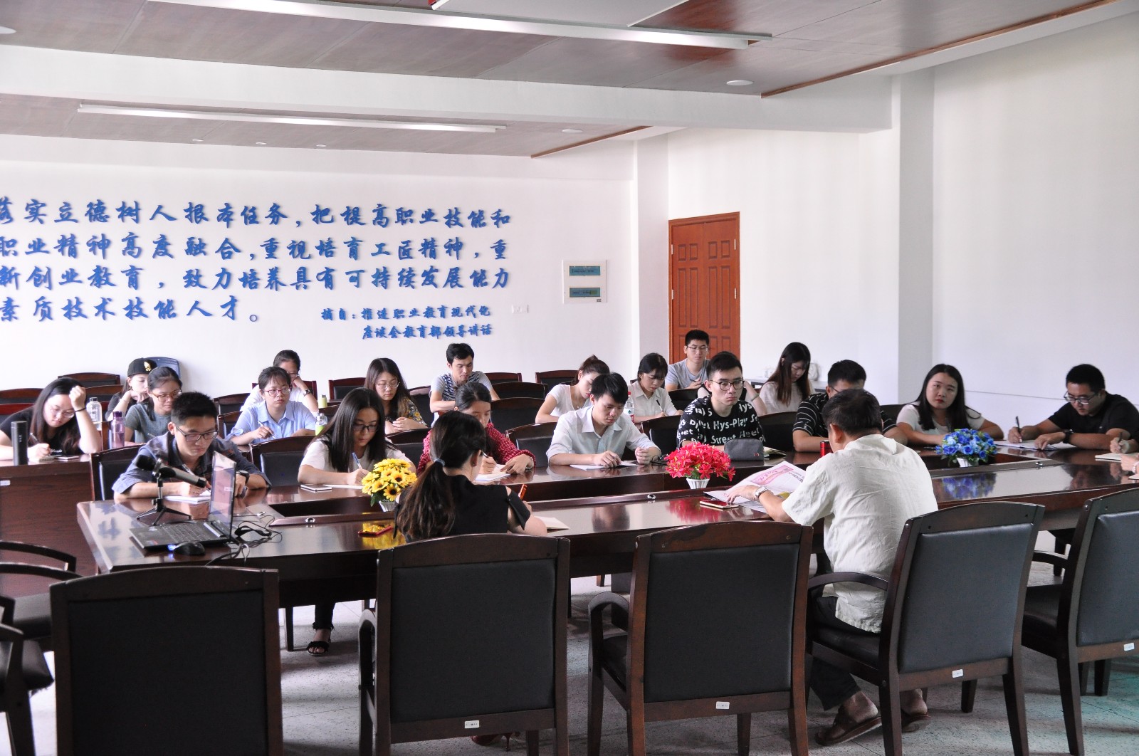 本学期新教师培训班共安排九期,每周一期,其形式多样,内容丰富,不仅有学院领导带头开展对校情教育、人事管理、考核办法等的通识讲座,教学经验丰富的系主任、带头人开设《如何上好第一堂课》、《教育教学能力提升》、《信息化教学能力提升》、《教学PPT的几点体会和建议》等主题的交流研讨,还有针对新教师薄弱的方面科研能力提升的专项培训,其中还穿插公开课的观摩、点评交流环节,让老师能有最直观的收获,最后一期《职业生涯规划》帮助新教师认识到职业规划发展的重要性,做好自己的职业生涯规划,鞭策提升自己的各项业务水平,在实际教学中努力耕耘,实现教师价值。