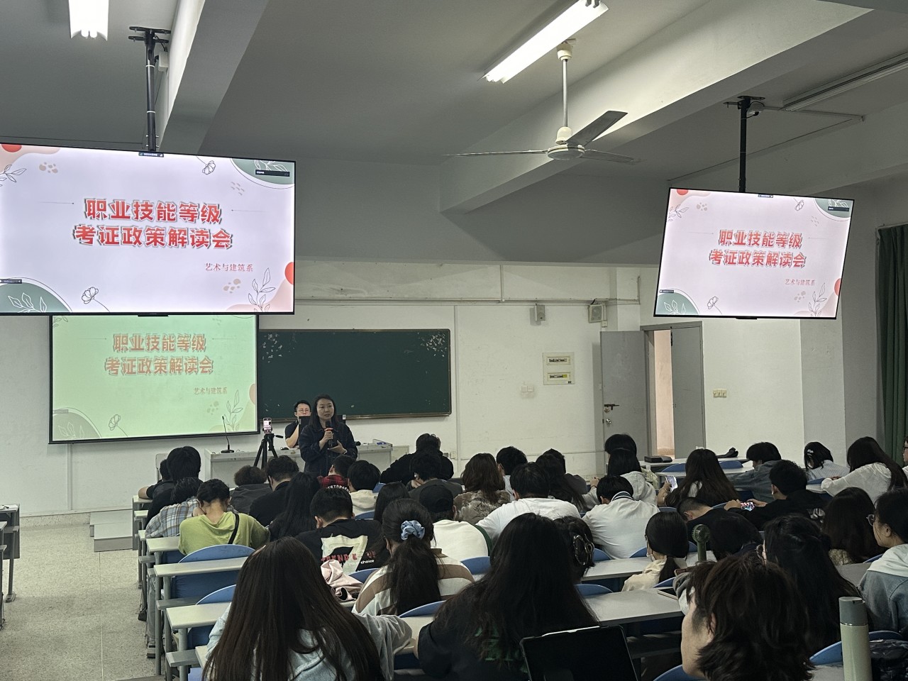 为激发学生的学习动力,提升学生专业素质,增强学生的就业优势,4月19日、23日下午,由继续教育学院牵头,相关二级学院组织的职业技能等级认定考试取证工作宣讲会在综合楼327教室顺利开展,两百多名师生参加宣讲会。