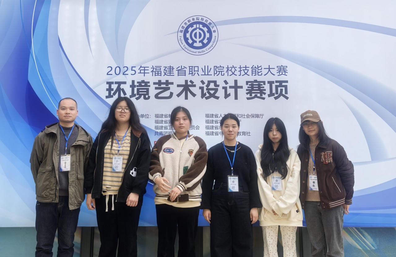 2025年4月1日-4月3日,由福建省教育厅、人社厅、财政厅、农业农村厅、卫健委、总工会、团省委、中华职教社联合主办的2025年福建省职业院校技能大赛“环境艺术设计赛项”在福建艺术职业学院圆满完成。据统计此次大赛全省各职业院校有33支代表队、共132名学生参赛。我系林淑容、周增强老师指导的21级建筑室内设计(3+2)班杨秋榕、余梦宣、林慧、陈慧雪四名同学喜获三等奖的佳绩。