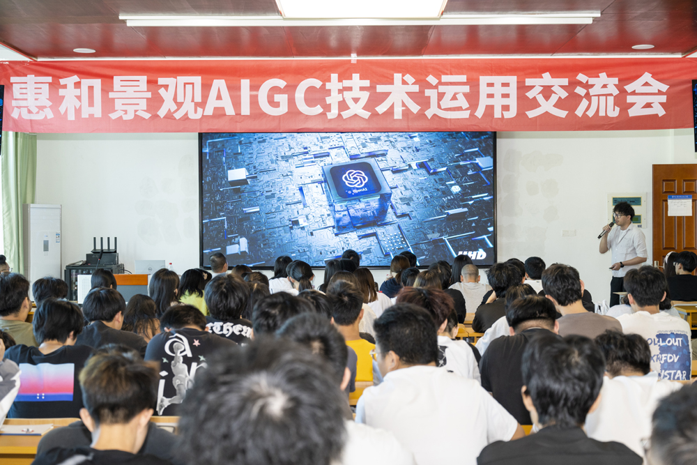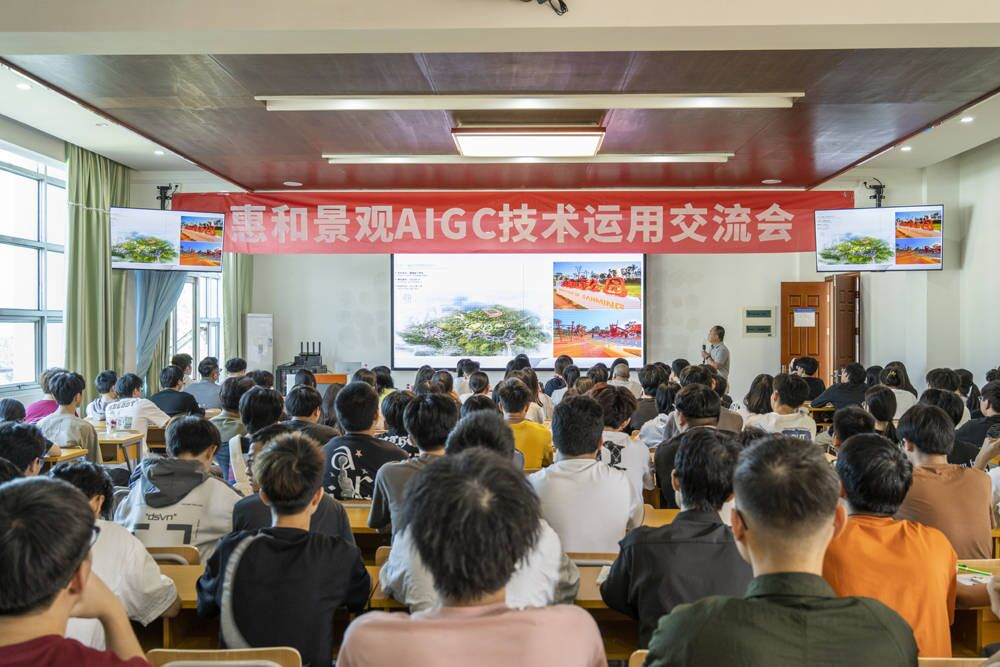 讲座下半场,AI技术总监林总详细介绍了AIGC能完成任何与图文有关的工作,包括景观设计、建筑设计、城市规划、动画设计等领域的实际运用。同时林总也重点介绍了团队AI实战案例,让老师同学们更加直观真实地感受到AI的技术运用。此次讲座大大激发了老师同学们的积极性与好奇心,交流会上互动频繁,气氛热烈。