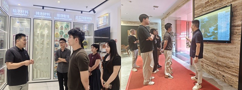 在江总的引导下,教师们先后走进企业展厅、施工工艺样板间与办公区域。展厅内,各类新型环保家装材料的实物展示与样板间的工艺细节,让教师们直观了解到行业在材料应用与工艺革新上的最新动态。