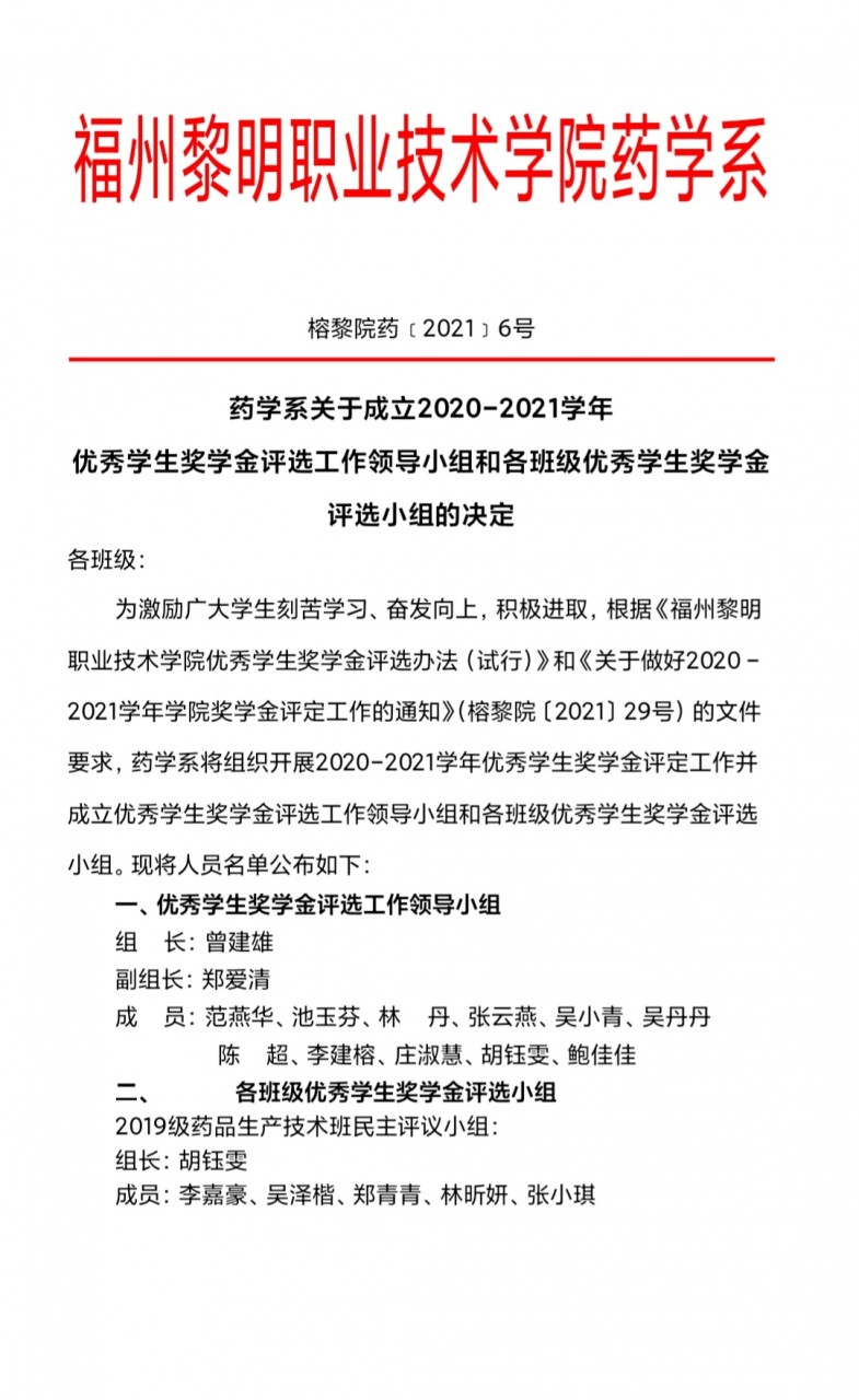 关于成立2020-2021学年 优秀学生奖学金评选工作领导小组和各班级优秀学生奖学金评选小组的决定