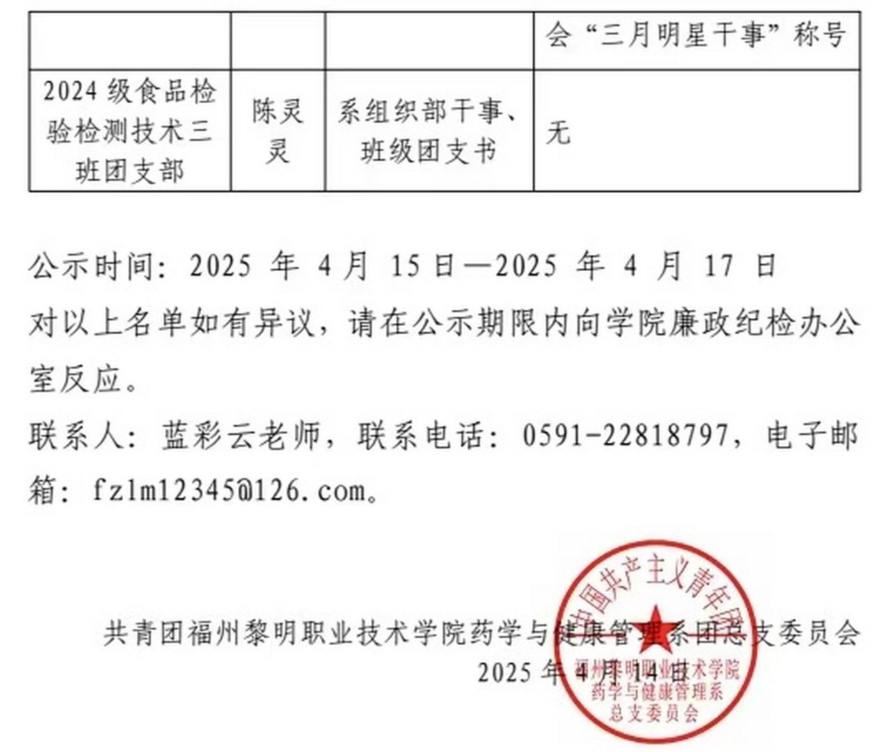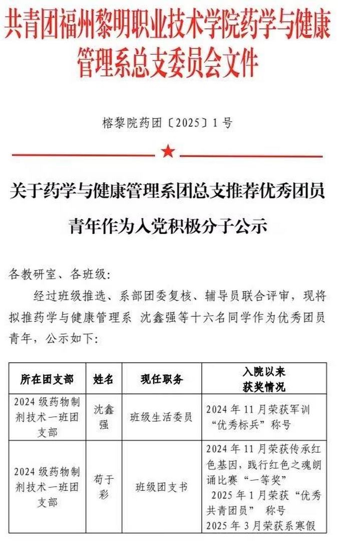 关于药学与健康管理系团总支推荐优秀团员 青年作为入党积极分子公示