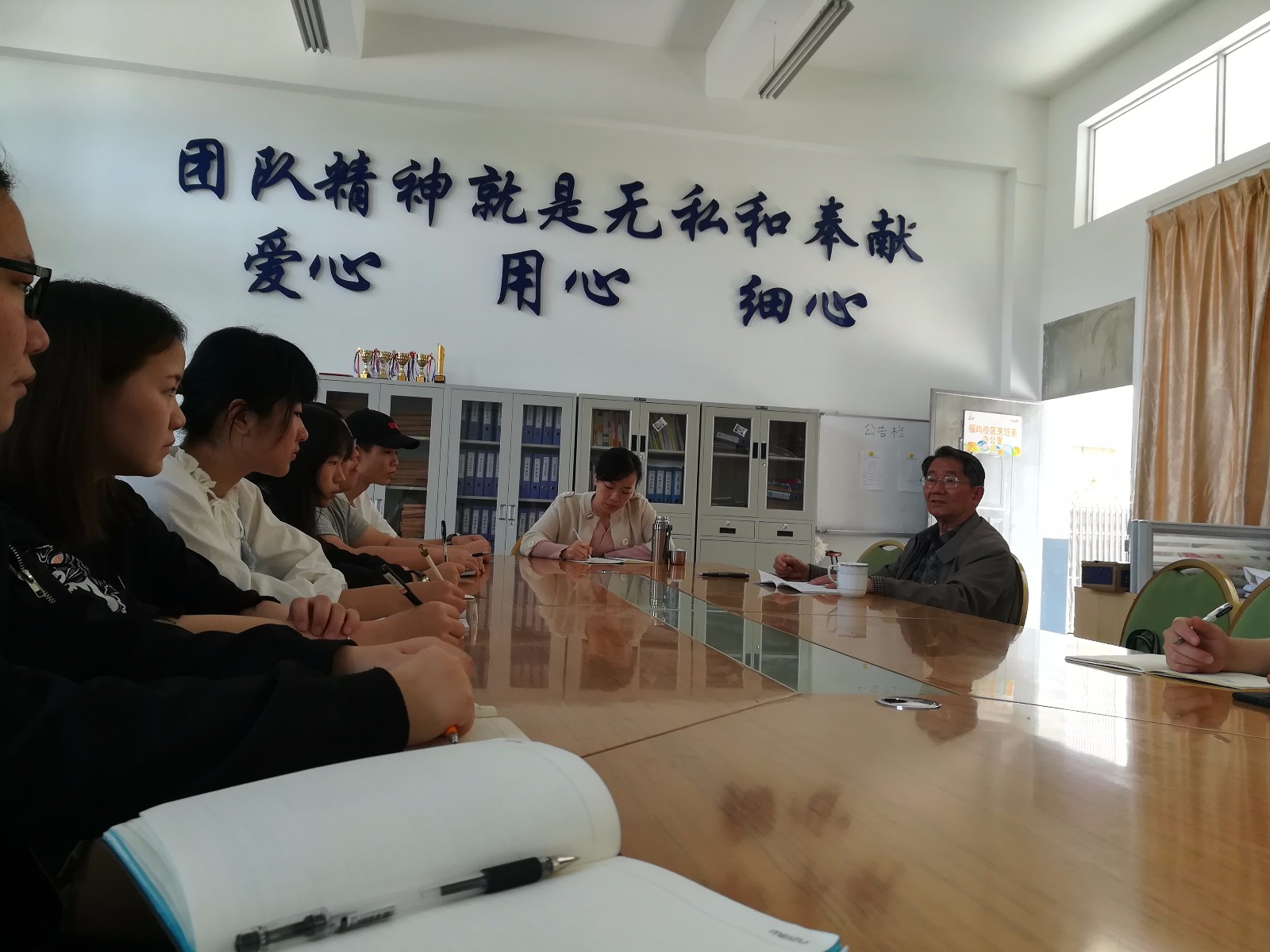 学院刘顾问认真听取并详细记录了同学们的发言后,对同学们提出的问题进行了耐心的解答,他表示,对于大家所提的意见和建议,学院将及时解决,给同学们一个满意的答复。最后,吴丽珍老师对在座的同学提出了几点希望,要求回去转达其他同学:希望新生尽快地适应大学的学习节奏和生活方式,希望将要快出去实习的同学们要有职业规划和想法,到社会上要吃苦耐劳,虚心求教,同时也希望同学们从转变自身做起,积极遵守学校的各项规章制度,不断摸索专业学习的方法方式,不断提高自己的综合素质和核心竞争力,切实提高自己的专业素养和专业技能,适应社会需求,做国家栋梁之才。