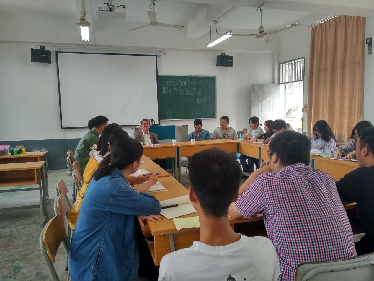 10月23日中午,2018-2019年第一次期中座谈评教会在福屿校区烹饪系205教室成功举行。与会人员有烹饪系17级和18级各班班长,团支书,学习委员以及新校区负责老师共计23人,共商烹饪系教学大事!