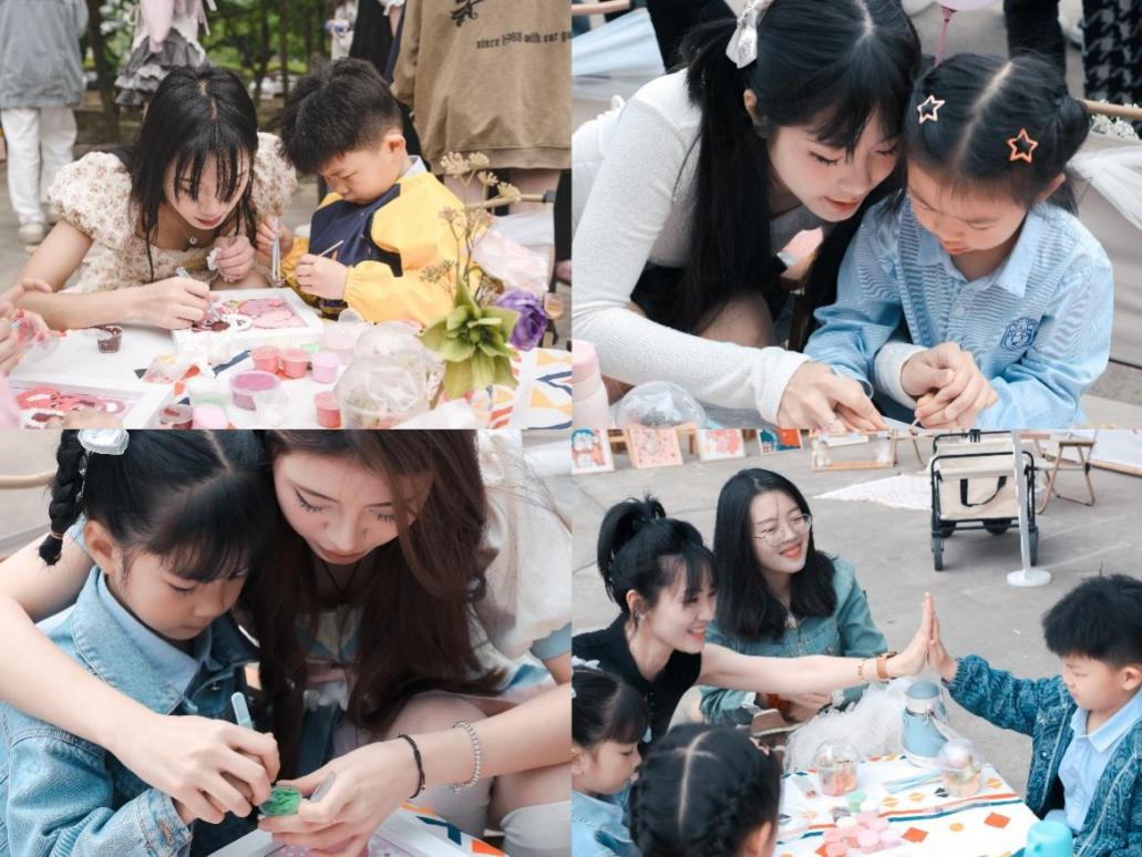 现场五彩斑斓的手工作品不仅吸引了众多师生驻足观赏,更到了观赛领导的一致认可。精致的衍纸、充满创意的纸浆画、手工玩偶……每一件作品都凝聚了指导老师和学生们的心血与汗水。这些作品不仅展示了学生们的美术技能,更体现了他们对生活的热爱与对美的追求。值得一提的是,本次展示还特别设置了互动环节,本专业学生现场教幼儿园小朋友们DIY体验制作纸浆画的乐趣。在本专业学生们的指导下,小朋友们纷纷拿起颜料、纸浆等材料,动手制作属于自己的手工作品。这种互动体验不仅增强了展示的趣味性,更让我们深刻感受到了美术手工的魅力与乐趣。