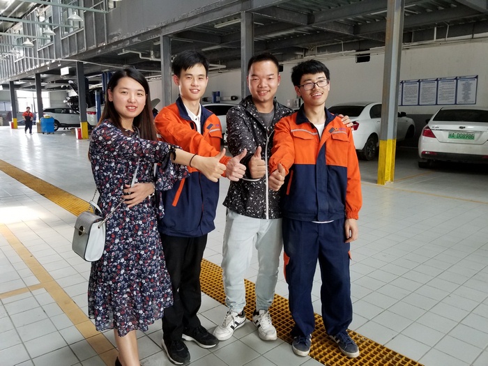 期间,林经理带领我们看望了在这毕业实习的15级汽修专业的陈炜祥和江志荣两位同学,参观了他们实习工作岗位,所在的备件仓库。主任、老师和辅导员亲切地向他们询问了实习工作、学习、生活等情况。同学们反映在企业实习过程中,学到了许多书本上没有的知识,体会到工作的辛苦、得到了锻炼和成长。老师们鼓励同学们要继续努力,脚踏实地,虚心向老师傅学习,培养自己吃苦耐劳的品质,告诉同学们要懂得珍惜,把握实习机会,为今后的就业打下更好的基础。该单位的领导对我们的实习学生表示满意。